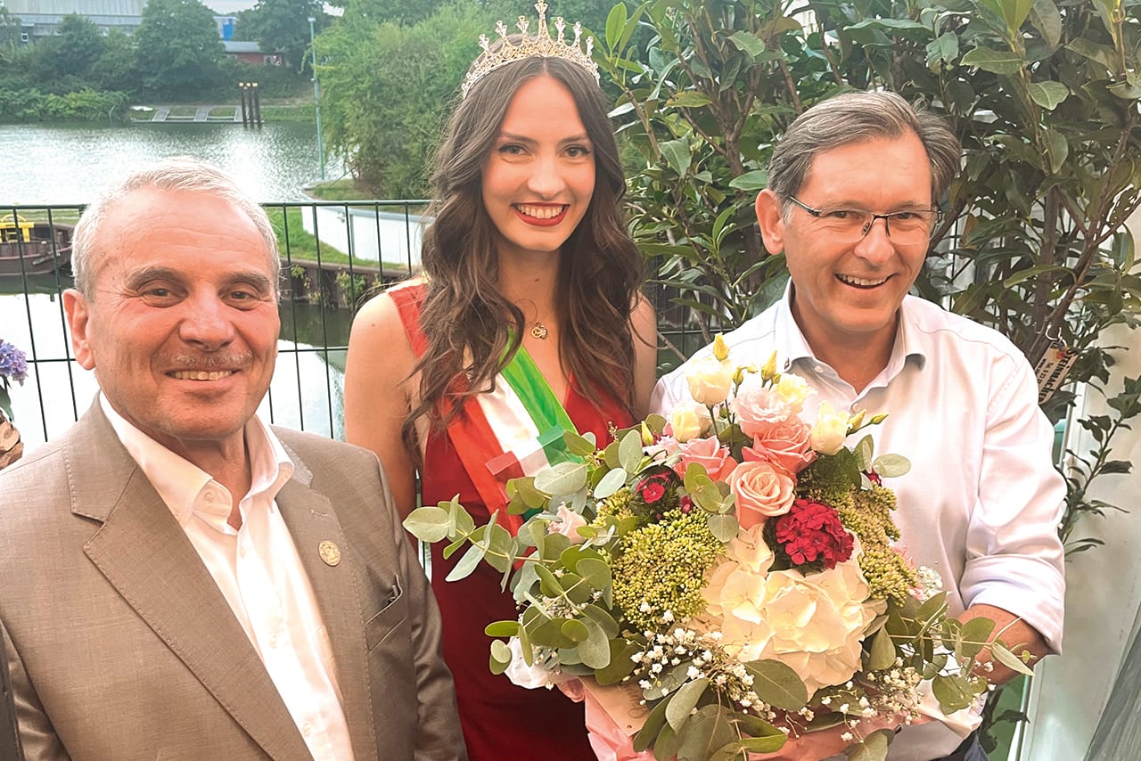 Begleitet wurde die Inthronisierung der neuen NRW-Kirmeskönigin im Ausschankbetrieb „Zum Ritter“ von einem musikalischen Rahmenprogramm. Die Schausteller, an der Spitze ihr Chef Albert Ritter, sind überzeugt, eine repräsentative Hoheit mit Kirmes-Gen gefunden zu haben. Einer der ersten Gratulanten der neuen Königin war am Donnerstagabend Hernes Oberbürgermeister Dr. Frank Dudda (Bild rechts, mit Albert Ritter und Julia I., Foto: Stadtmarketing Herne).