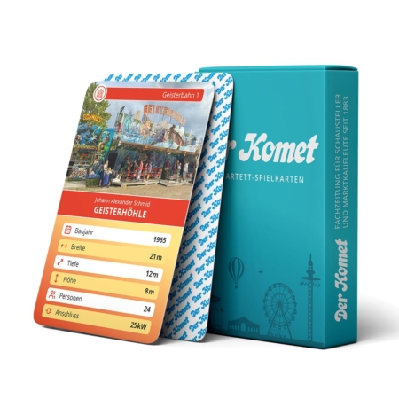 Das Kirmes Quartett wird in einer stabilen und hochwertigen Faltschachtel geliefert, die speziell für Kartenspiele im Quartett-Format gefertigt ist. Die Verpackung schützt die Karten zuverlässig und ist ideal für Transport, Aufbewahrung und regelmäßiges Spielen geeignet.