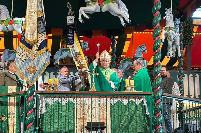 Am Donnerstag, 25. September 2025, versammelten sich Schaustellerfamilien, Wiesnwirte und Gäste im Marstall-Festzelt zum ökumenischen Oktoberfest- und Gedenkgottesdienst. Beginn war um 9:30 Uhr, der Eintritt wie immer frei. Seit 1956 gibt es den Gottesdienst auf der Wiesn, seit 2015 findet er im Marstall statt. Der ökumenische Rahmen macht deutlich: Glaube verbindet – über Konfessionen hinweg.