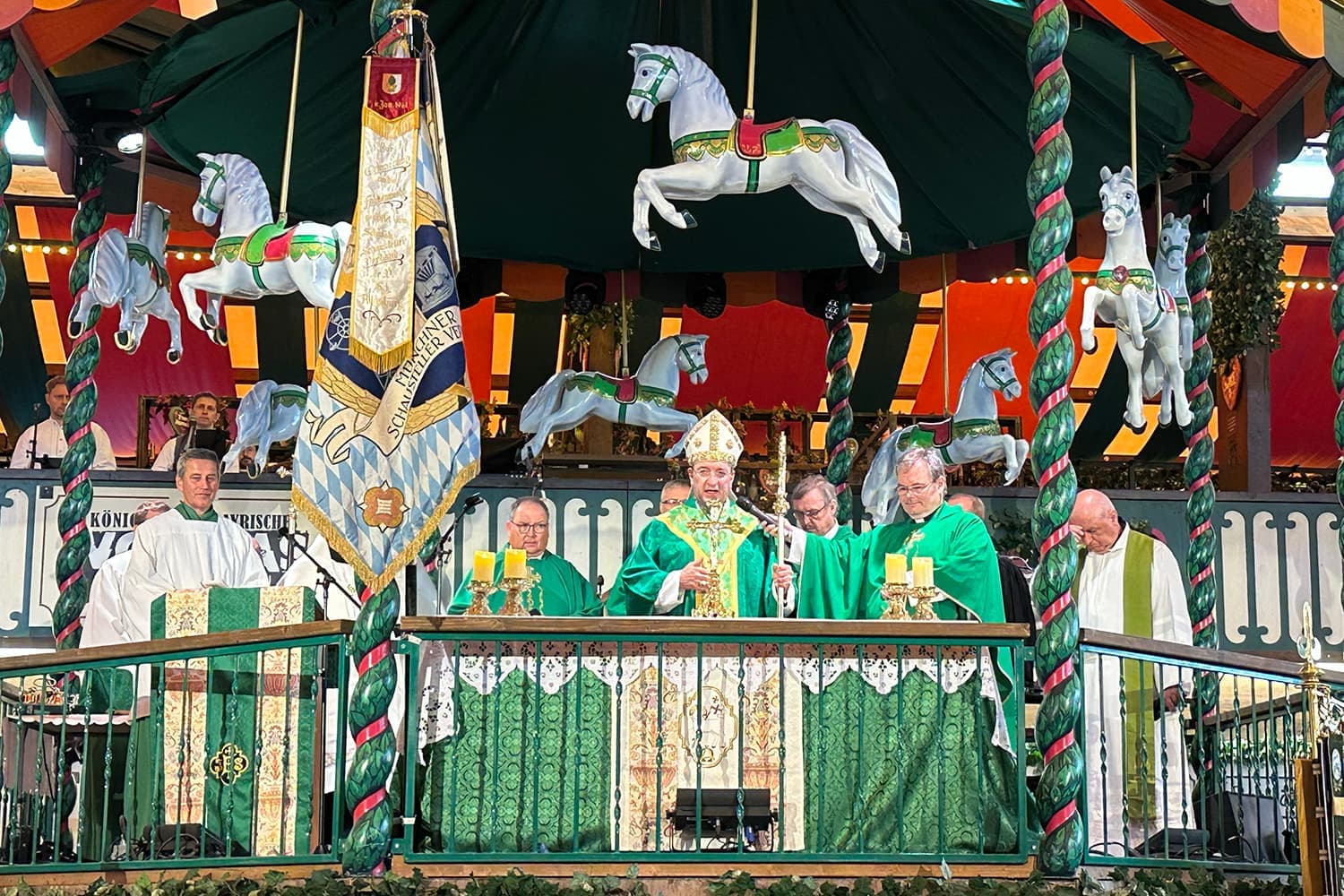 Höhepunkt neben der Firmung war die Segnung der restaurierten Fahne des Münchner Schausteller-Verbands. Der neue Wiesnchef Dr. Christian Scharpf übernahm dabei die Patenschaft – ein starkes Symbol für Zusammenhalt und Tradition.